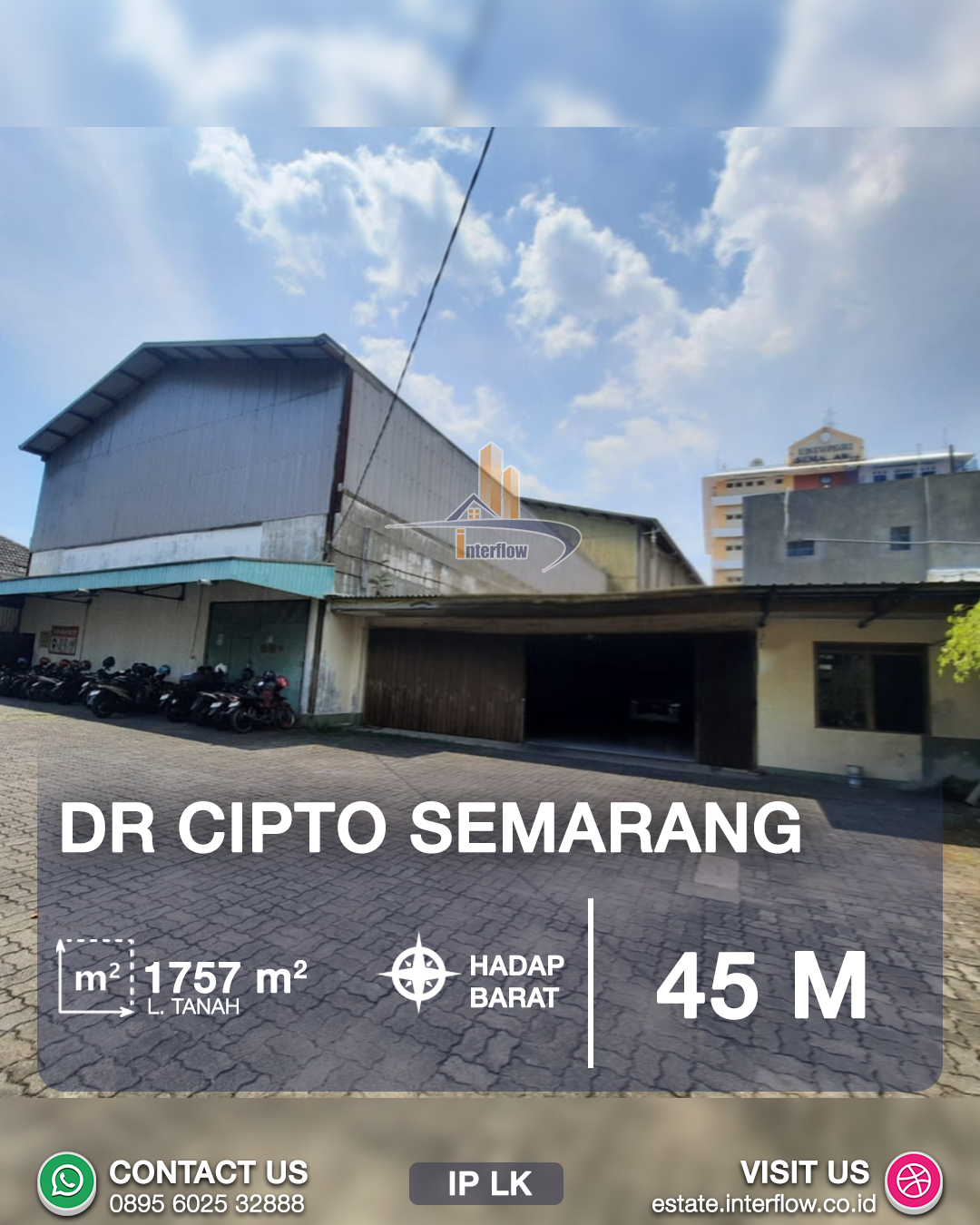 Dijual gudang luas dengan lokasi super strategis di kawasan Dr. Cipto, Semarang. Cocok untuk berbagai kebutuhan seperti usaha, penyimpanan barang, distribusi, hingga investasi jangka panjang. Memiliki akses jalan besar dan area parkir luas, gudang ini menawarkan kemudahan operasional bisnis Anda.