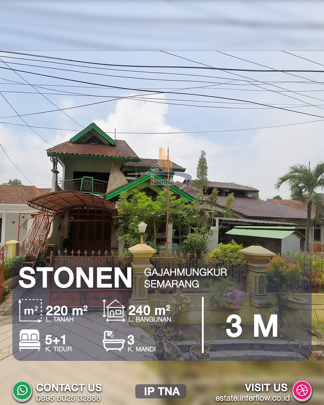 Dijual rumah 2 lantai dengan halaman depan yang asri, berlokasi di kawasan premium Stonen – Gajahmungkur, Semarang. Hunian ini sangat cocok untuk keluarga besar yang mengutamakan kenyamanan, ketenangan, serta akses strategis ke berbagai fasilitas kota. Terletak di lingkungan yang nyaman dan berkembang, rumah ini menawarkan ruang yang luas dan fasilitas lengkap untuk mendukung gaya hidup modern.