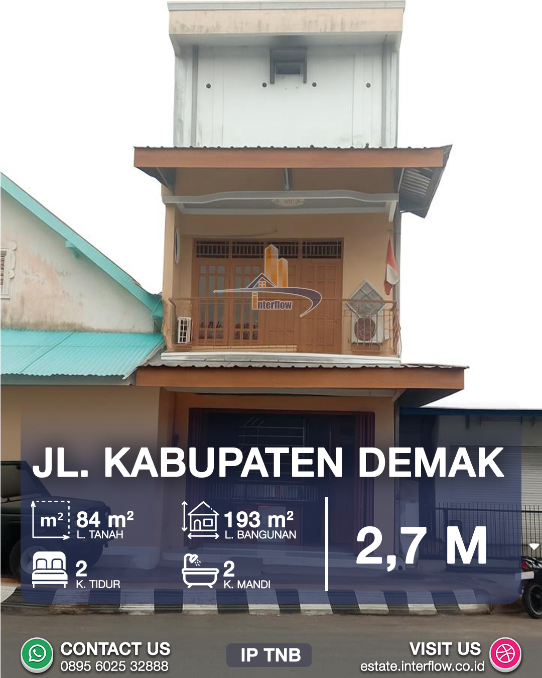 Dijual rumah 3 lantai dengan lokasi yang sangat strategis di Jl. Kabupaten, Demak. Hunian ini cocok untuk dijadikan tempat tinggal maupun membuka usaha karena berada di kawasan ramai dan dekat dengan pusat kota serta Alun-Alun Demak.