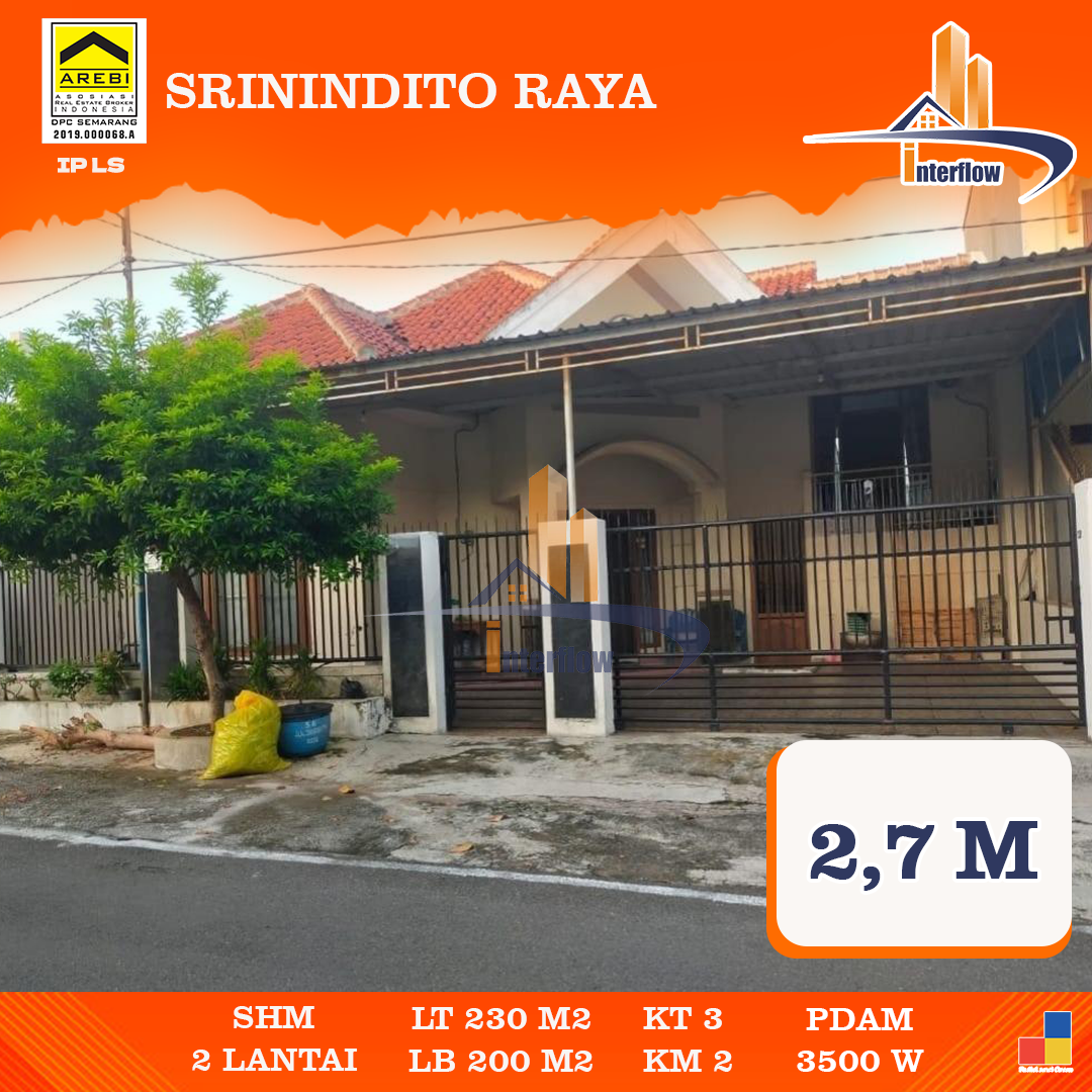 Dijual rumah bagus 2 lantai di kawasan Srinindito Raya, Semarang. Rumah ini menawarkan desain yang modern dan lingkungan yang nyaman, dengan lokasi strategis yang mudah diakses. Sertifikat Hak Milik (SHM) menjamin keamanan legalitas properti ini.