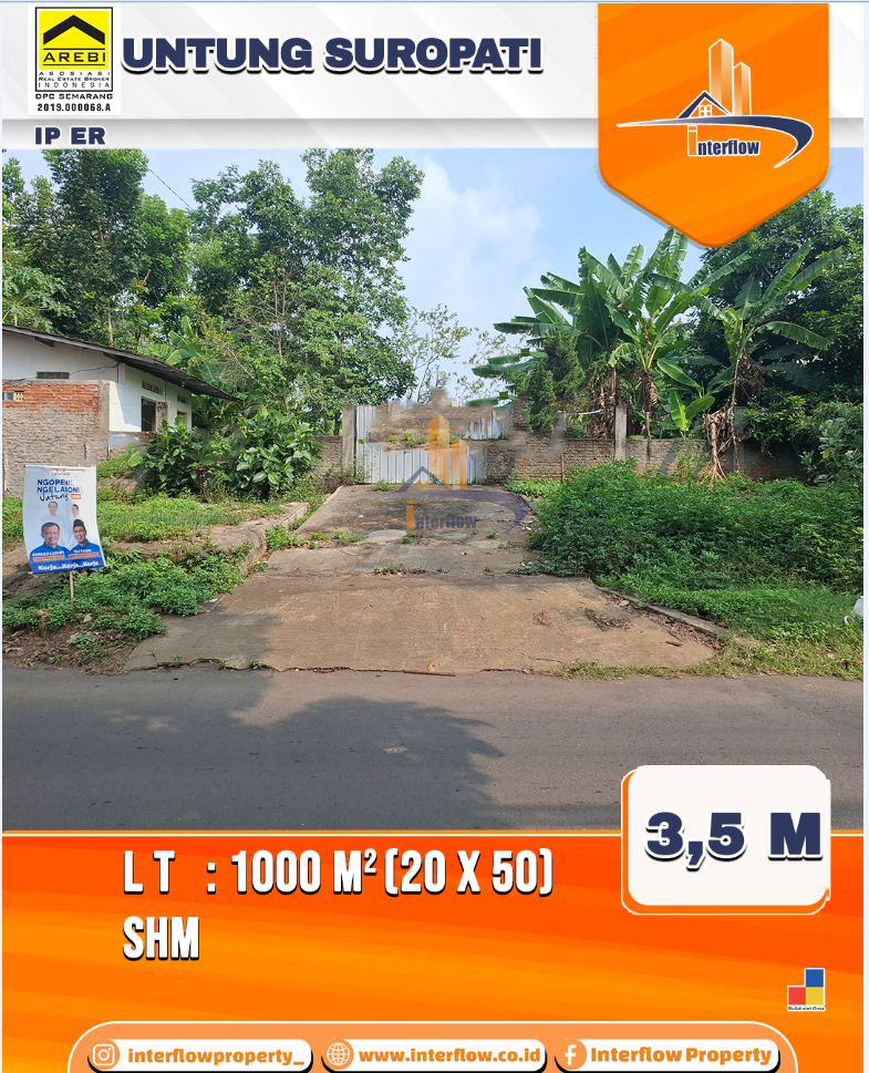 Dijual tanah luas dengan lokasi strategis di Untung Suropati, Semarang. Dengan luas tanah 1000 m², tanah ini cocok untuk berbagai jenis usaha, baik komersial maupun pembangunan properti. Dilengkapi dengan legalitas SHM yang terjamin dan akses jalan yang mudah, tanah ini memiliki potensi yang besar untuk investasi.