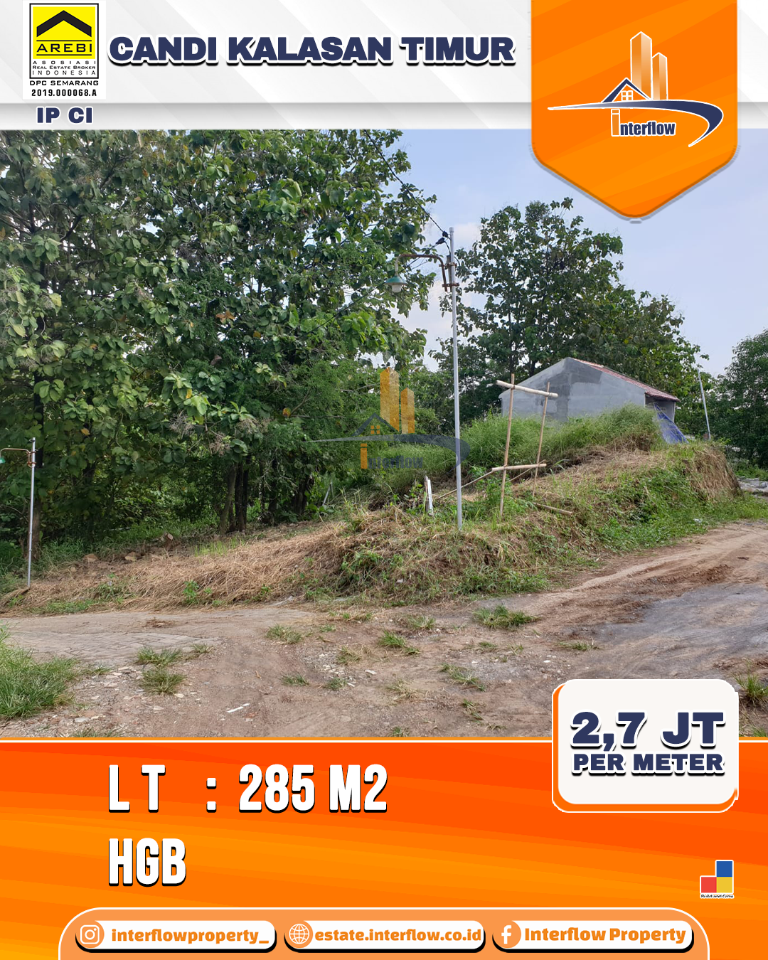 Dijual tanah seluas 285 m² di kawasan Candi Kalasan Timur, Semarang. Lokasi strategis dan berada di lingkungan yang sudah berkembang, menjadikan lahan ini ideal untuk dibangun rumah tinggal, dibagi kavling, atau dijadikan investasi jangka panjang. Dengan akses jalan yang mudah dan kontur tanah yang bagus, properti ini menawarkan kemudahan pembangunan dan peningkatan nilai properti yang menjanjikan.