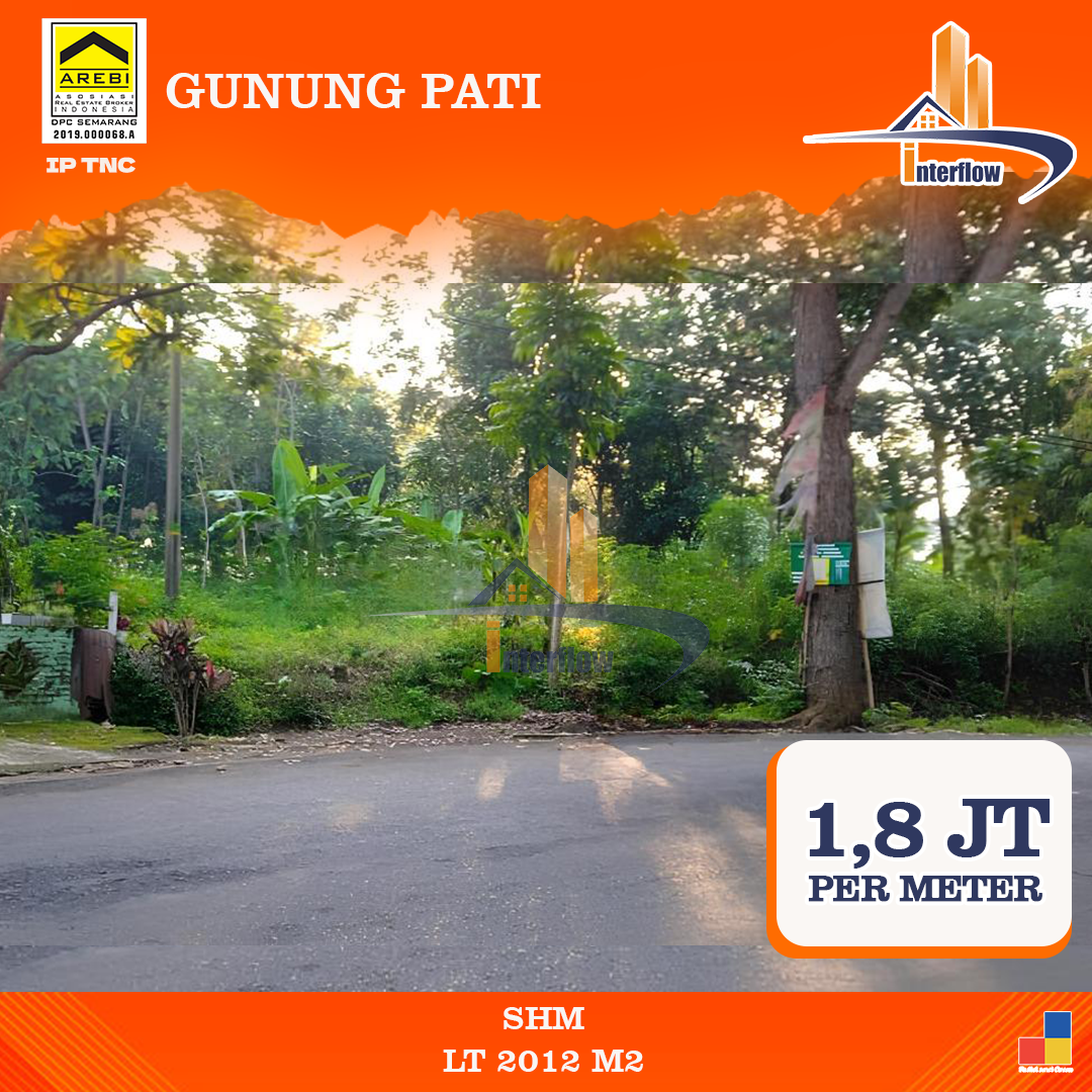 Dijual tanah luas dan strategis di kawasan Gunung Pati, Semarang. Memiliki luas 2.012 m², tanah ini berlokasi di pinggir jalan besar dengan akses yang sangat mudah. Cocok untuk investasi, pembangunan rumah, kos-kosan, atau usaha lainnya. Sertifikat Hak Milik (SHM) sudah tersedia, sehingga proses jual beli dapat dilakukan dengan aman dan nyaman.
