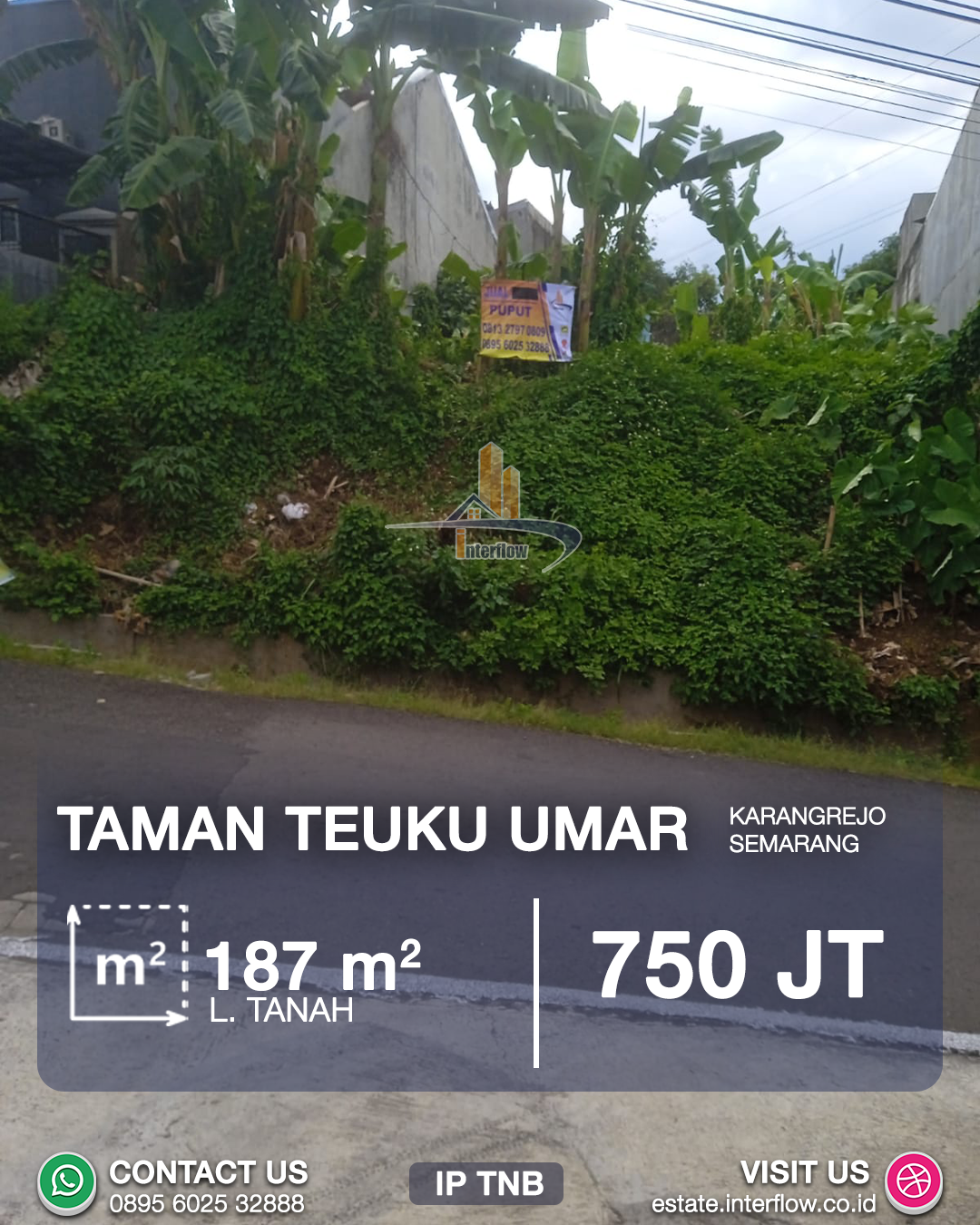 Tanah kavling strategis di Taman Teuku Umar, Karangrejo – Semarang dengan luas 187 m² siap untuk dimiliki. Lokasi berkembang pesat, cocok untuk membangun hunian pribadi, rumah kost, maupun sebagai investasi properti jangka panjang.