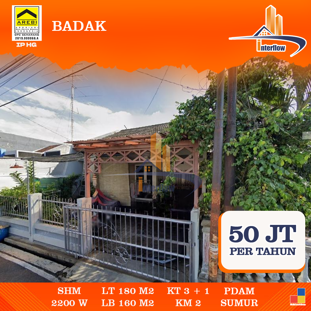 Disewakan rumah minimalis di daerah Badak, Semarang Timur! Dengan luas tanah 180 m² dan bangunan 160 m², rumah ini menawarkan 3+1 kamar tidur dan 2 kamar mandi. Lokasi sangat strategis dengan akses yang mudah dan lingkungan yang nyaman, cocok untuk tempat tinggal keluarga. Dilengkapi dengan sumber air dari PDAM dan sumur, serta daya listrik 2200 watt, rumah ini siap dihuni dengan fasilitas yang memadai.