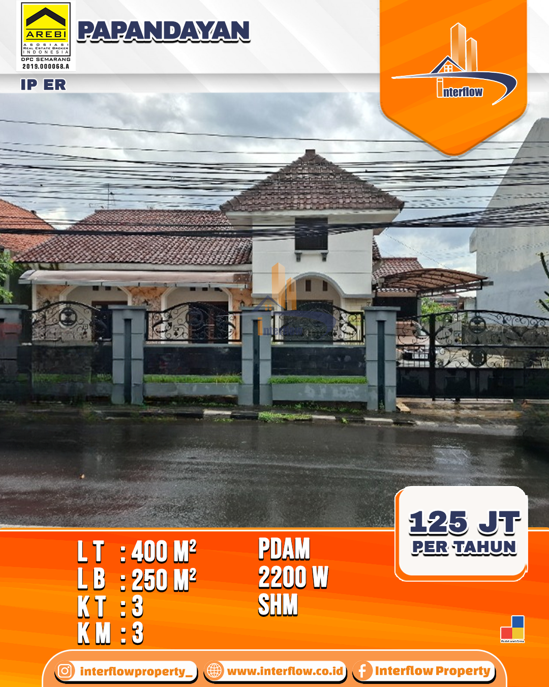 Disewakan rumah luas di kawasan Papandayan, Semarang Selatan. Dengan luas tanah 400 m² dan luas bangunan 250 m², rumah ini menawarkan kenyamanan dan ruang yang cukup untuk keluarga. Terletak di lokasi strategis dengan akses yang mudah, rumah ini berada di lingkungan yang nyaman dan aman. Dilengkapi dengan fasilitas PDAM dan daya listrik 2200W, rumah ini siap untuk disewa dengan legalitas SHM.